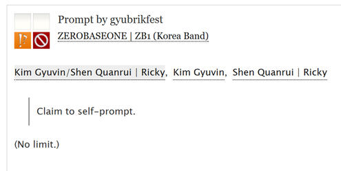 CAN I POST WITHOUT CLAIMING?ideally, we want most participants signed up through the formhowever, the purpose of this fest is to drive up gyubrik fanworks and celebrate them as a pair. therefore, we allow outside submissions even if you haven't signed up or claimed a prompt.